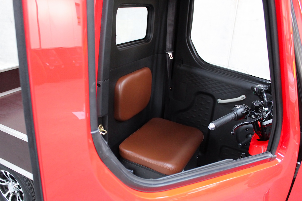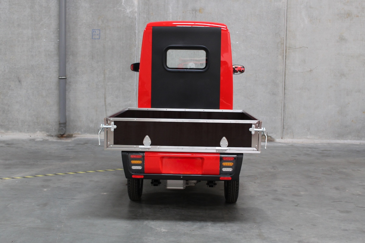 Ive-Car’GO Pick-up er udstyret med skivebremser for og bag, håndbremse og et praktisk bakkamera. Den markante røde kabine er udstyret med varmeapparat, så du kan transportere varer året rundt – uanset vejret.