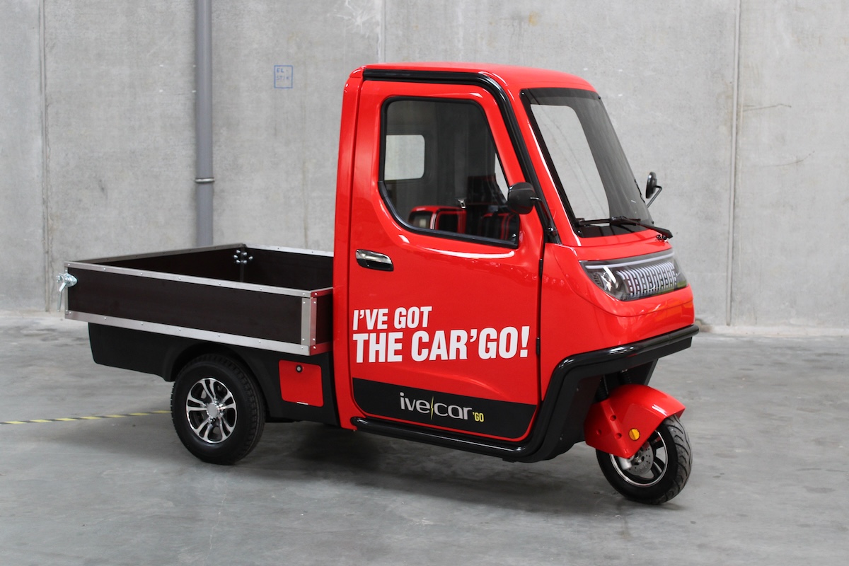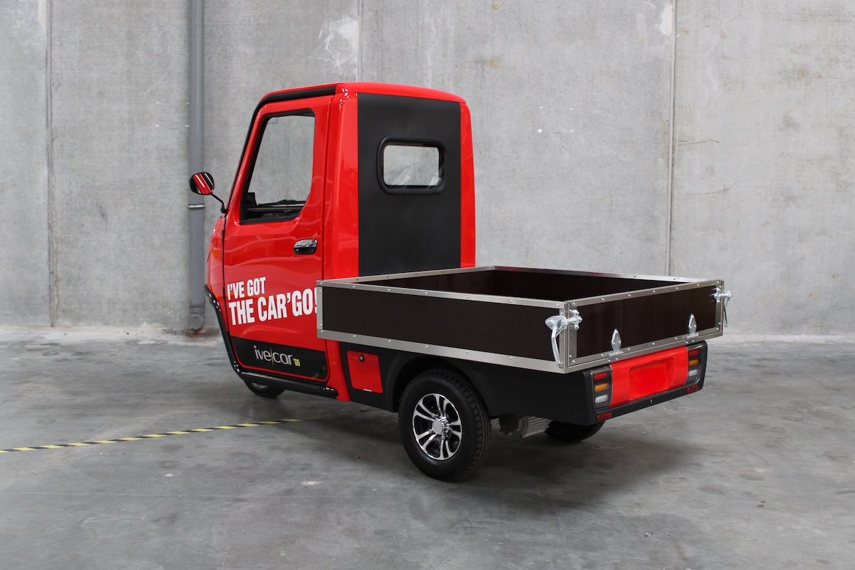 Ive-Car’GO Pick-up er en elektrisk kabinescooter med åbent lad (1300 × 1200 × 250 mm), en 3 kW motor og et 70Ah batteri, der giver op til 75 km rækkevidde. Med nem adgang, god lasteevne og komfort med varme og bakkamera er den skabt til fleksibel og effektiv varetransport.